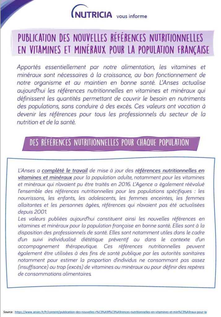 Publication des nouvelles références nutritionnelles en vitamines et minéraux pour la population française – Avril 2021