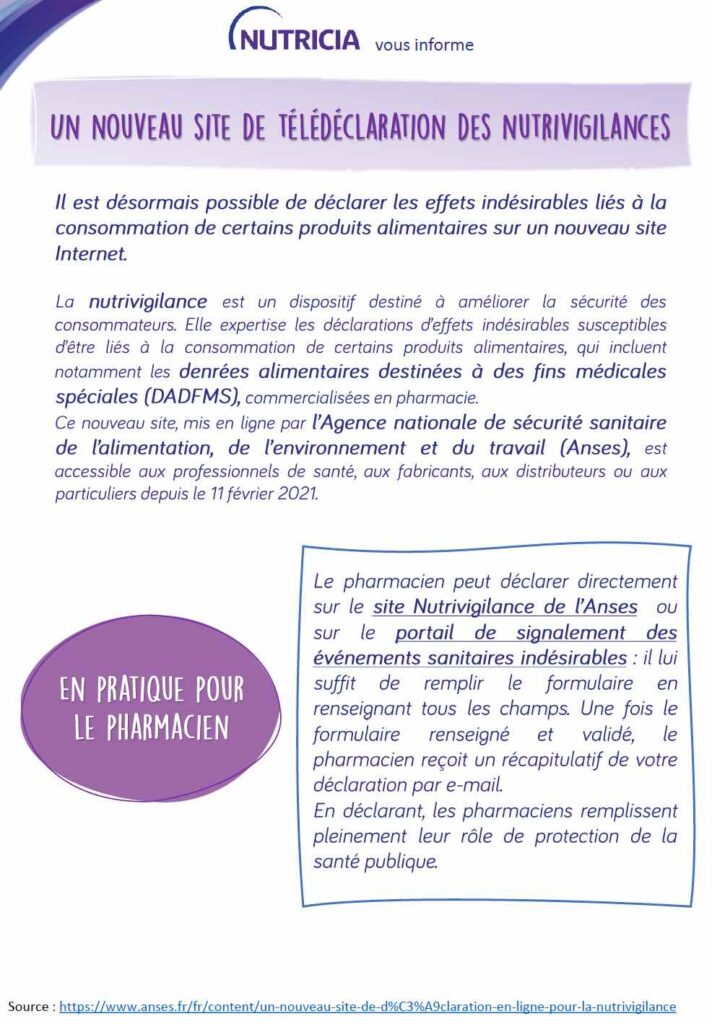 Un nouveau site de télédéclaration des nutrivigilances – Février 2021
