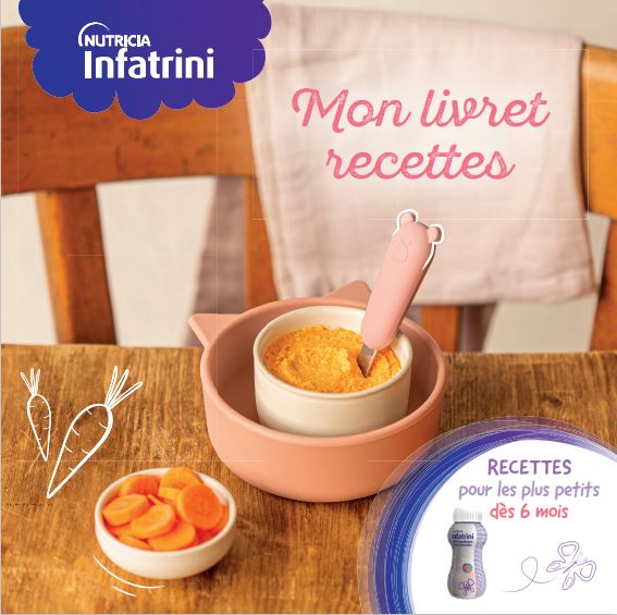Ce livret propose des recettes simples afin d’intégrer Infatrini® ** dans les repas de vos petits patients dénutris dès 6 mois.