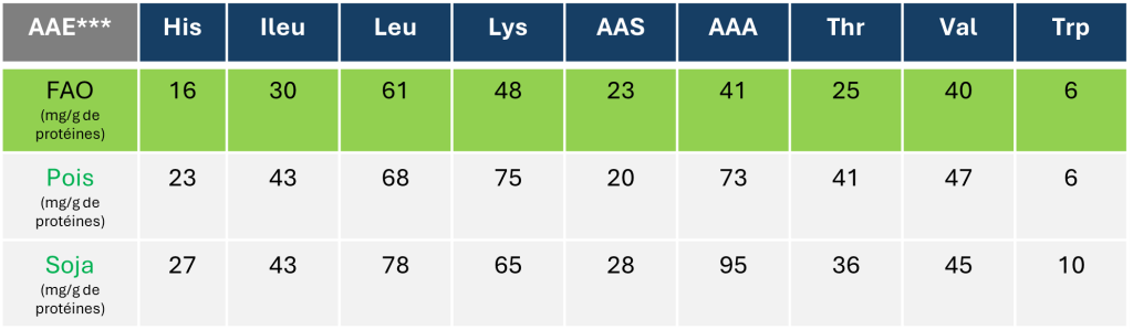 **FAO : Food and Agriculture Organization ***AEE : Acide aminé essentiel